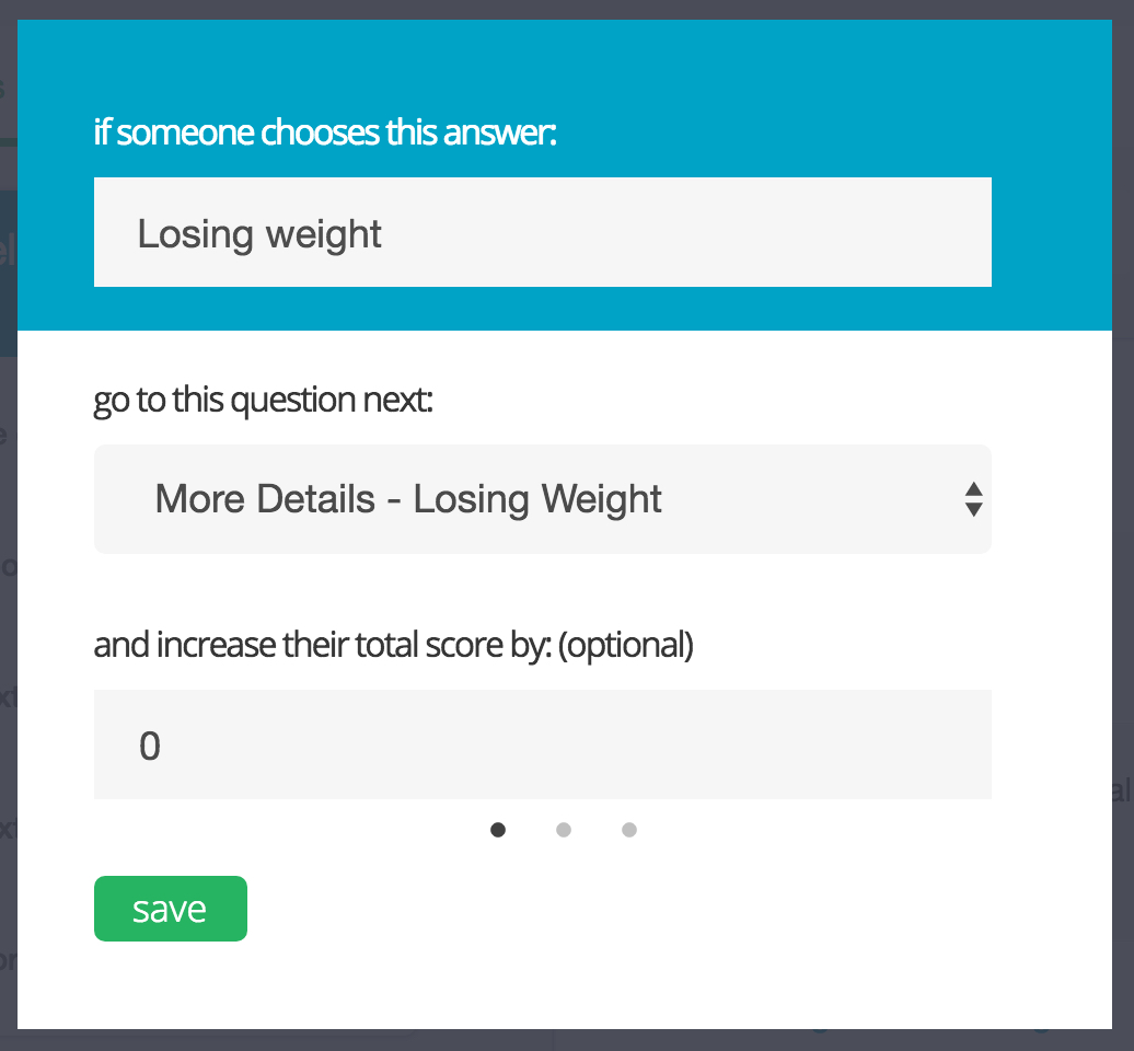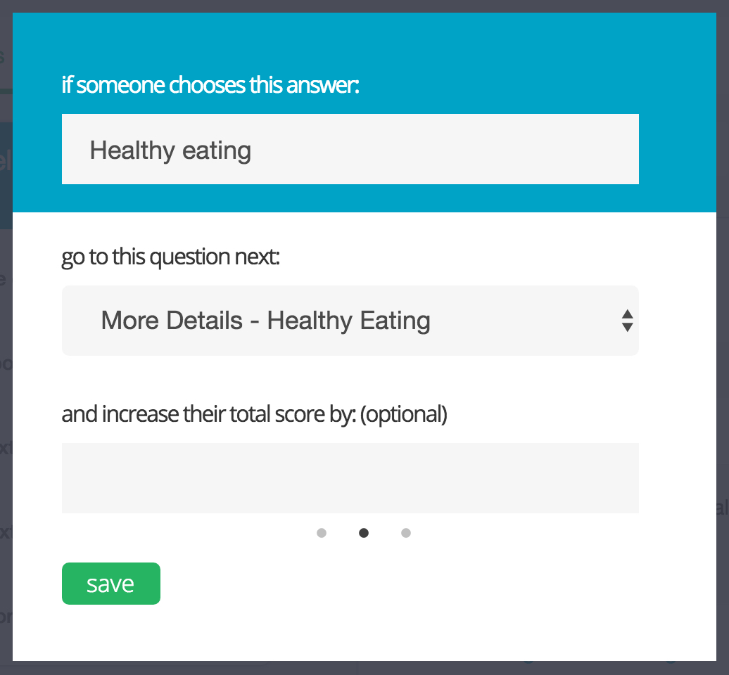 - In the lightbox that opens, choose what question to show the person taking the survey based on each answer choice: