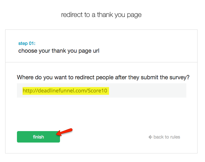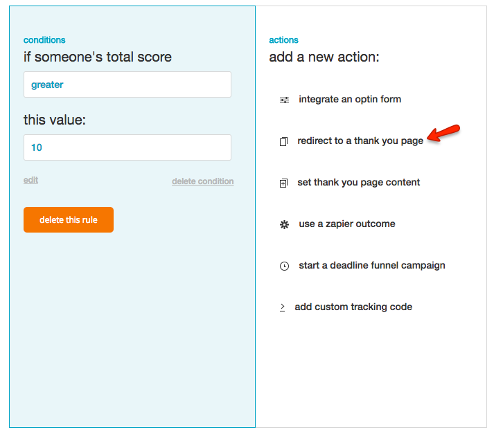 - You can repeat these steps and add as many rules as you like to create your quiz and control the thank you page messages based on the quiz score.