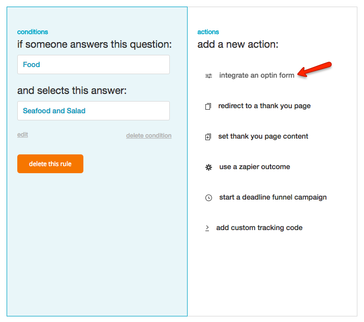 - Create a new 'integrate an optin form' action to integrate a different optin form based on the new answer: