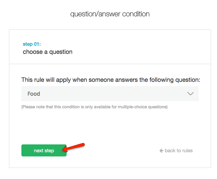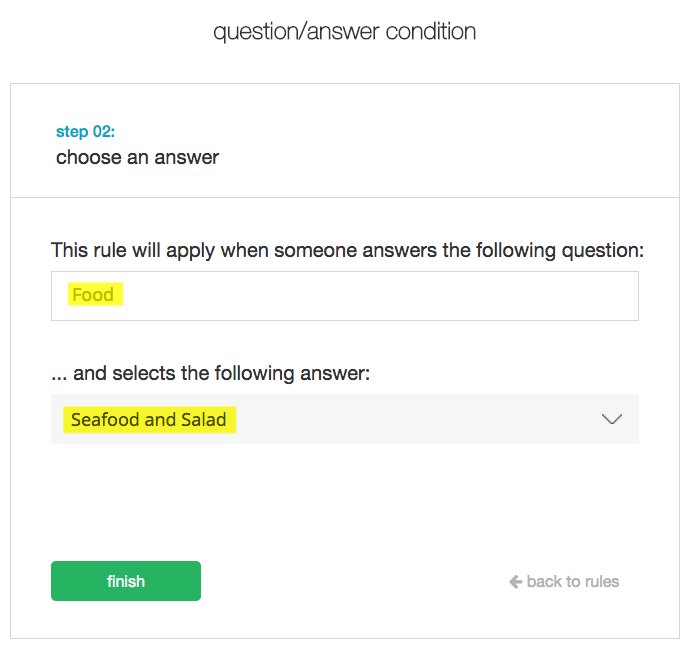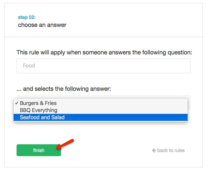 - You can add another rule and repeat these steps for the next answer to the 'Food' question: