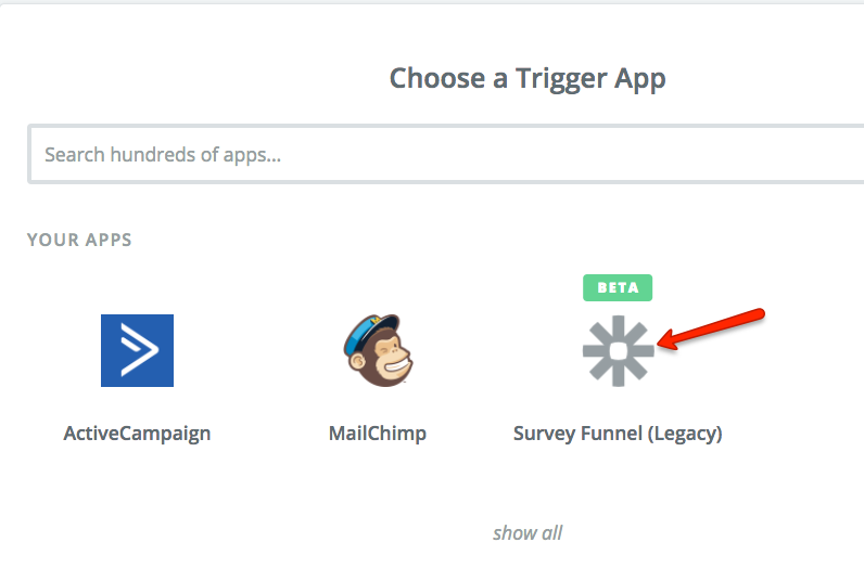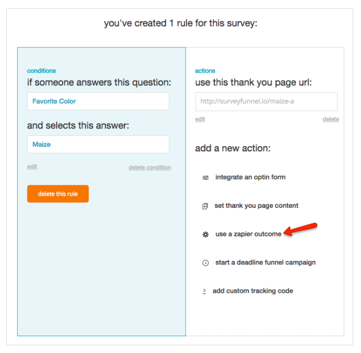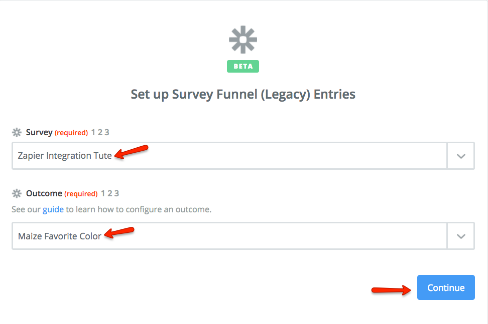 - Your Survey Funnel account integrated with Zapier and your Zapier outcome labeled: