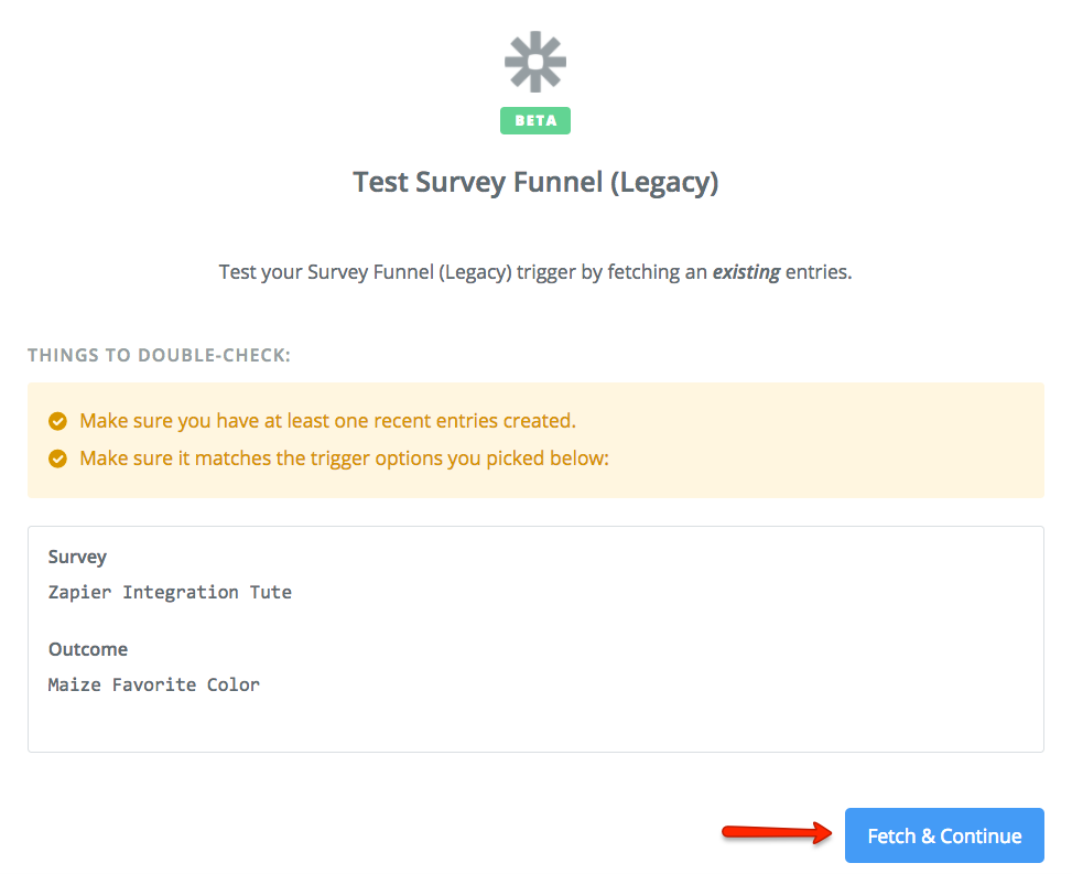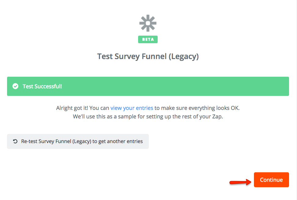 - Your survey setup in Survey Funnel including a Zapier outcome (You should go through the survey once to create data):