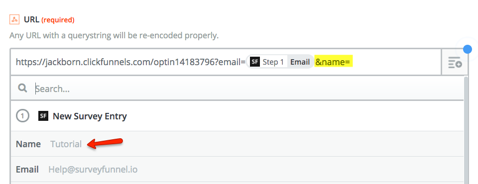 - If you want to add the name to your ClickFunnels list also, at the end of the first field add &name= and then plus to add the Name field:
