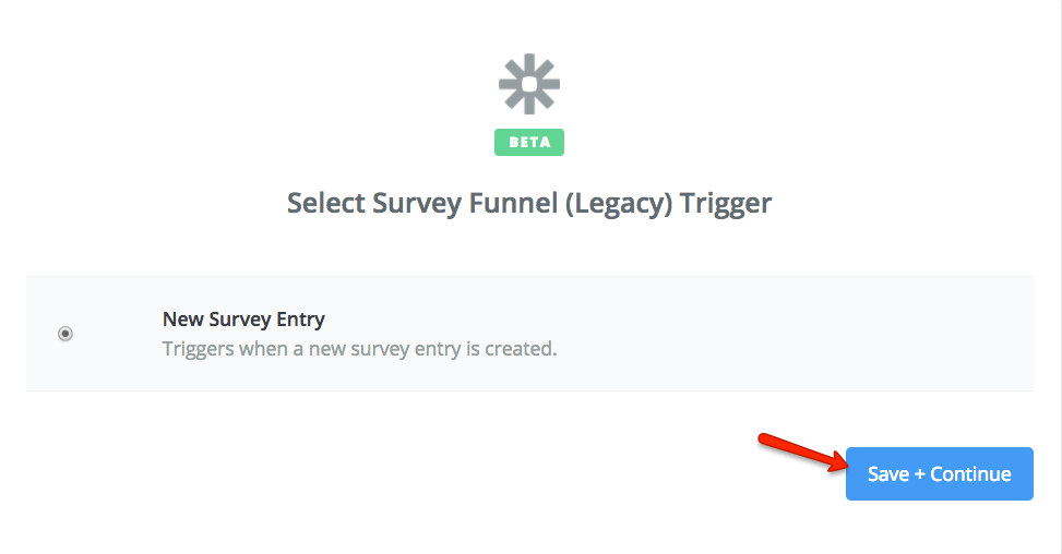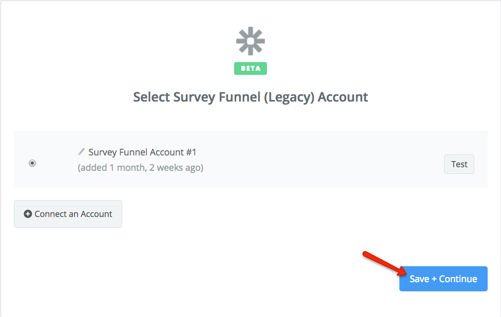 - Confirm your Survey Funnel account and click 'Save + Continue':