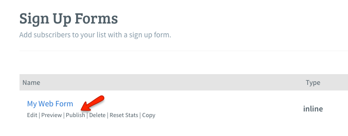 - Click 'Publish' for your Sign Up Form: