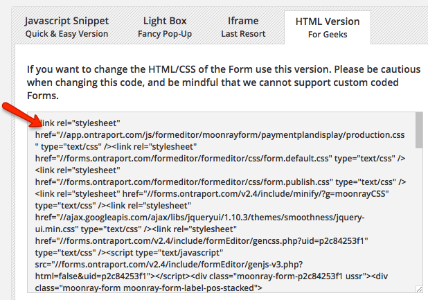 - Select 'HTML Version' and copy the HTML form code to a text editor: