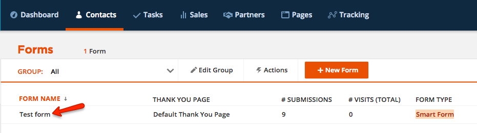 - Navigate to Contacts >> Forms and select the form you want to use: