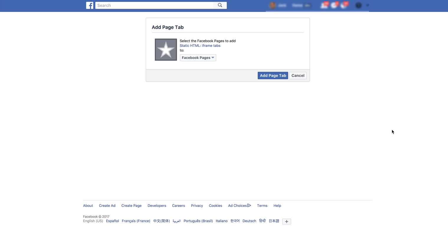 Installing the Static HTML Facebook App: