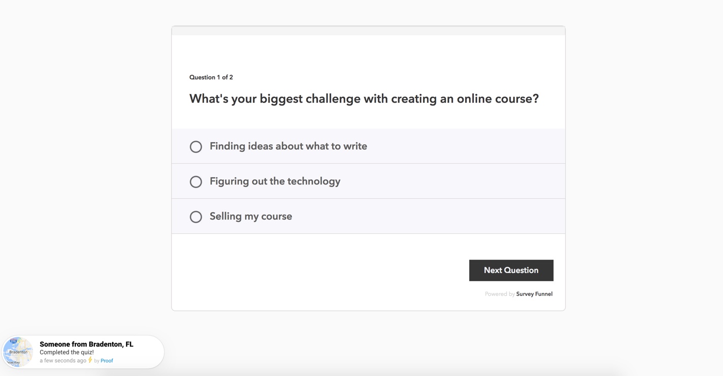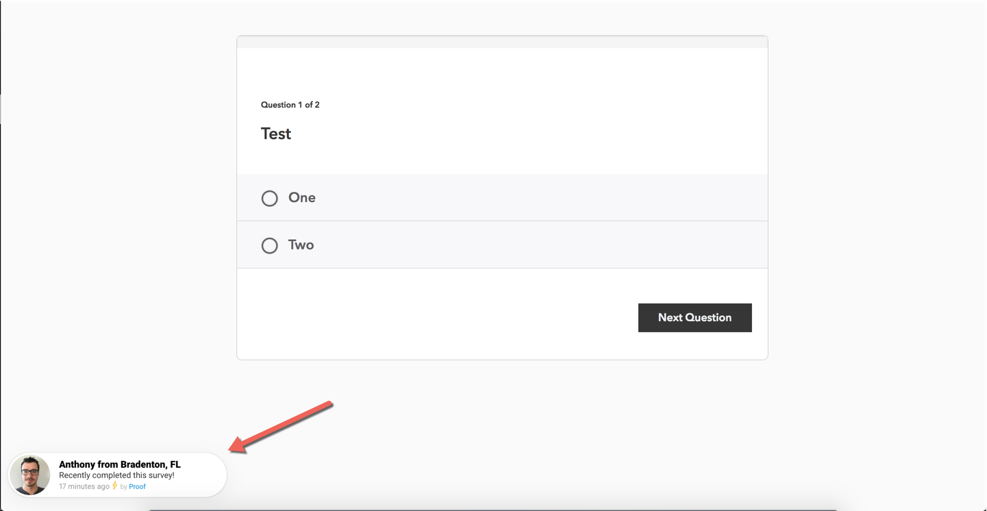 Here's a simple example of Proof on a survey page, showing (in the bottom-left corner) people who have recently completed the survey: