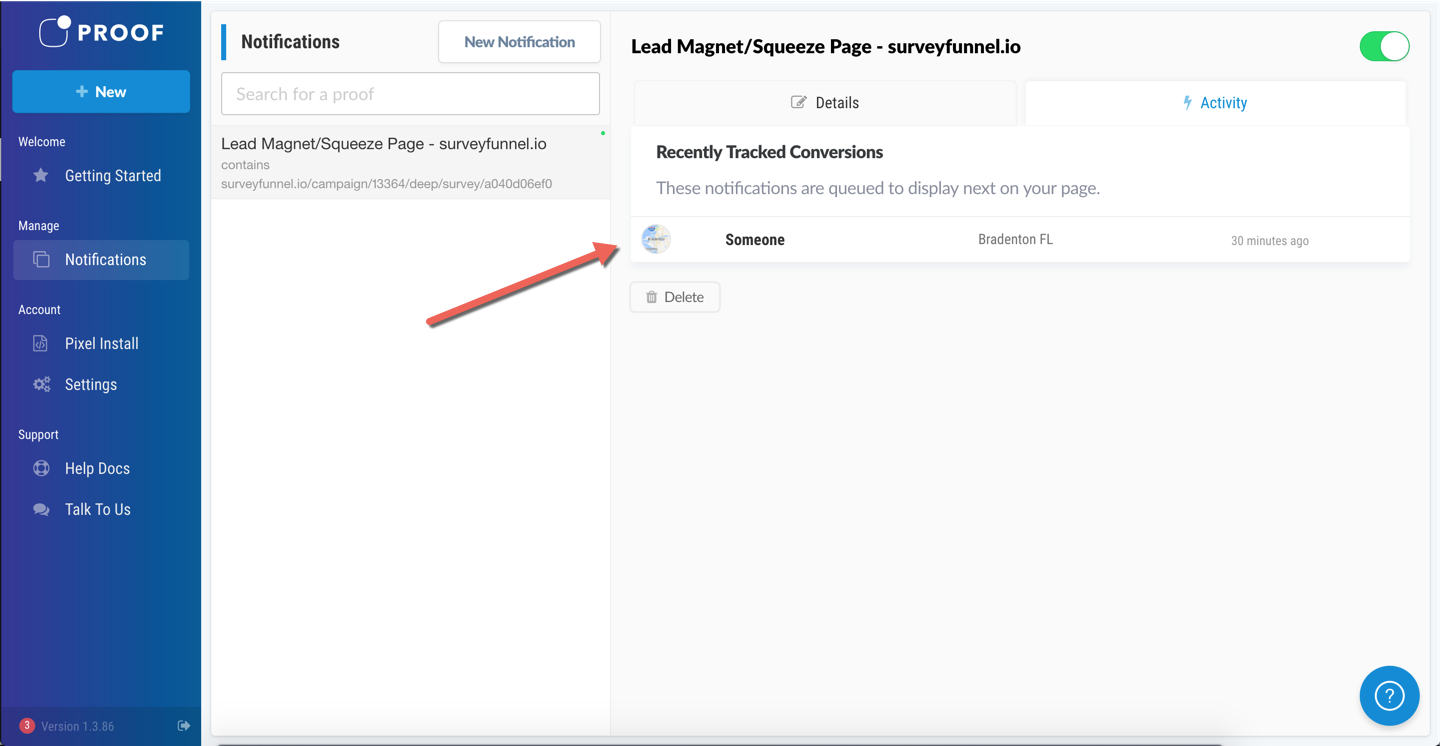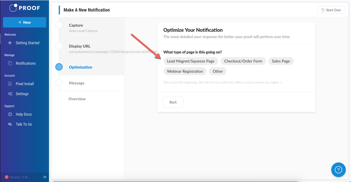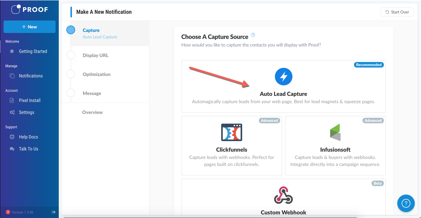 - Create your first Proof notification, and choose Auto Lead Capture as the source: