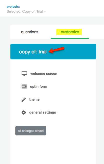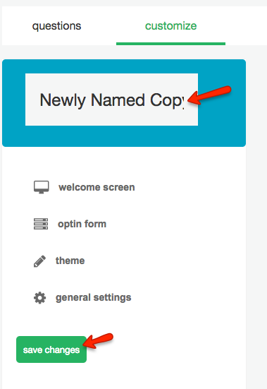 - Navigate to 'Customize' and click right on the current name of the survey to change the text: