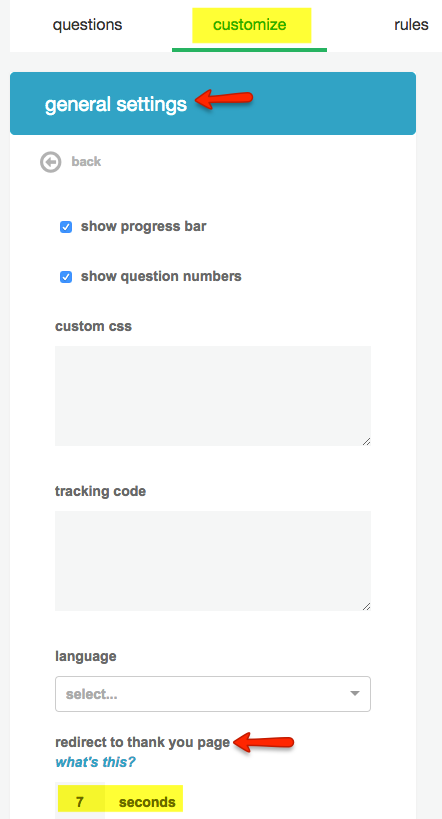 To change these settings, navigate to your Survey Funnel admin, under Customize >> General Settings':